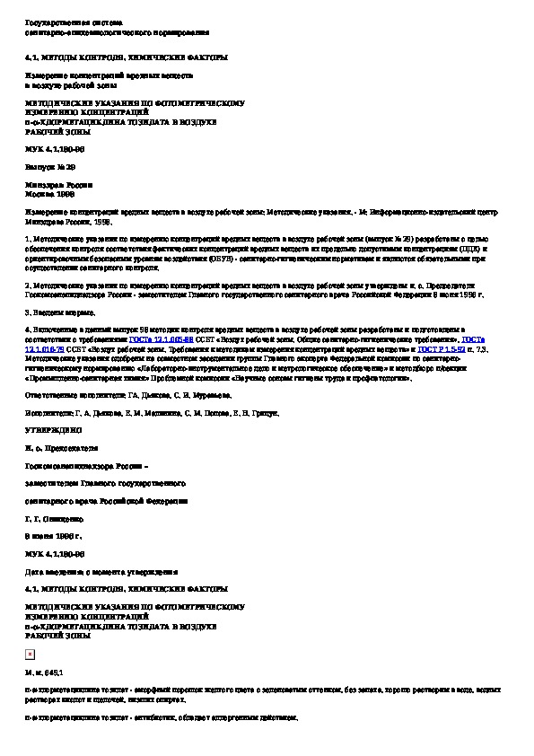 Наша цель состоит в том, чтобы предоставить вам быстрый доступ к содержанию документа Методические указания по фотометрическому измерению концентраций п-[альфа]-хлорметациклина тозилата в воздухе рабочей зоны.