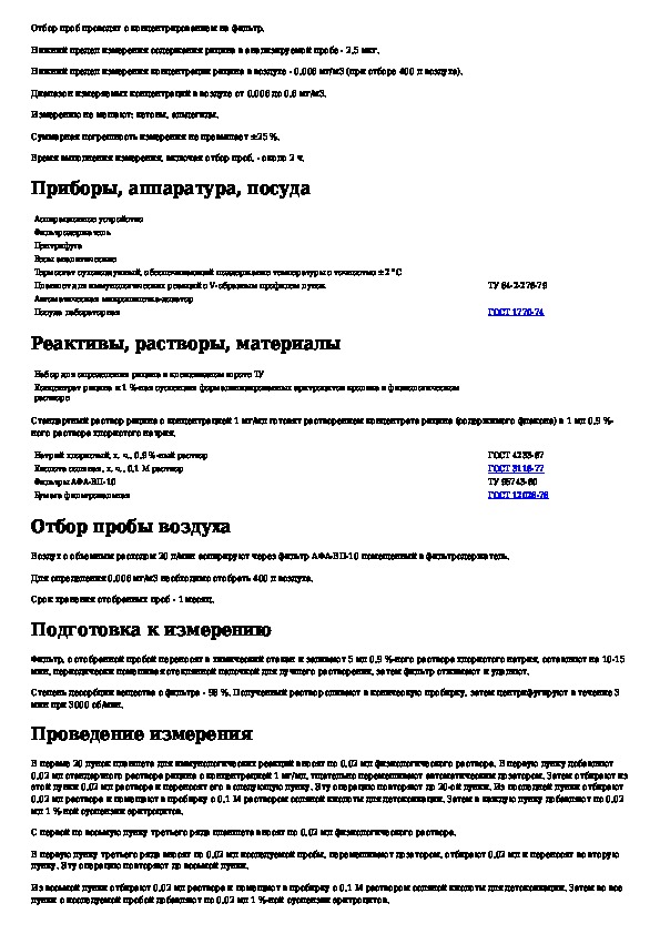 Методические указания по измерению концентраций рицина в воздухе рабочей зоны