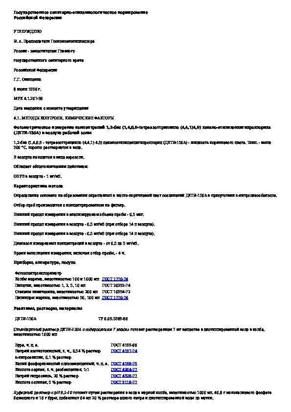 • Загрузка на компьютер - Вы можете также скачать Фотометрическое измерение концентраций 1,2-бис (1,4,6,9-тетраазоттрицикло (4,4,1)4,9) декано-этилидендигидрохлорида (ДХТИ-150А) в воздухе ра на свой компьютер и сохранить его в файлах.