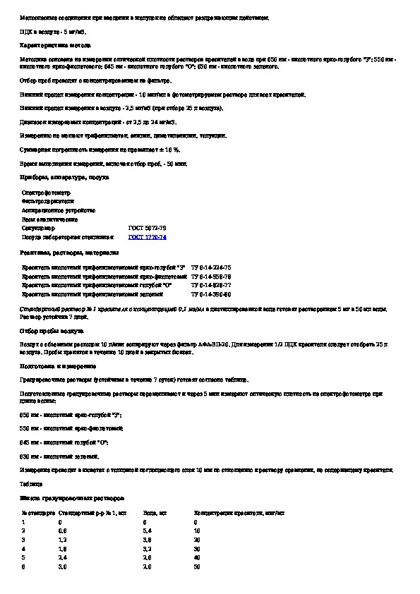 Спектрофотометрическое измерение концентраций кислотных трифенилметановых красителей в воздухе рабочей зоны