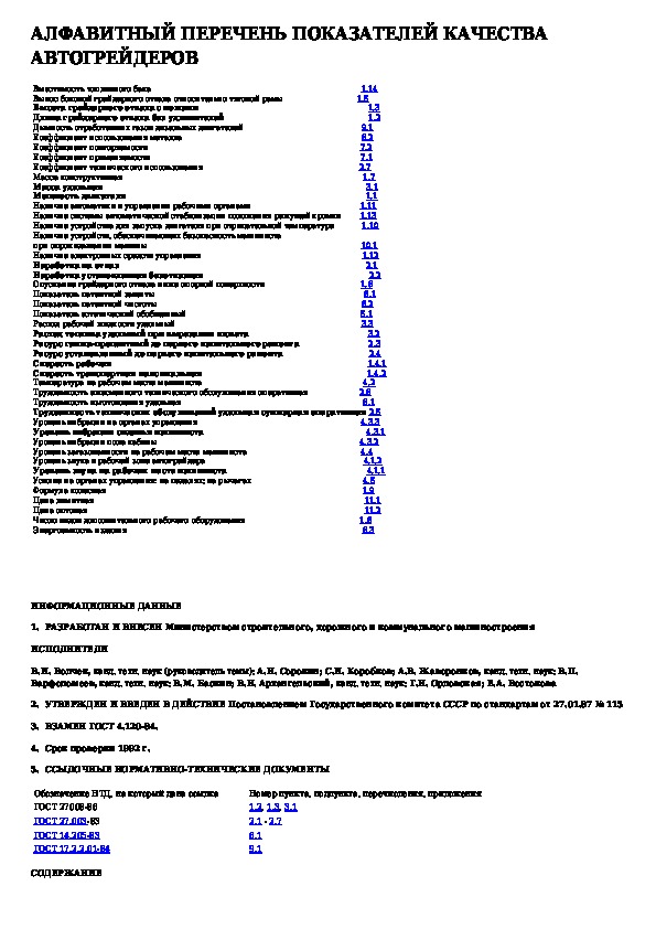 Наша цель состоит в том, чтобы предоставить вам быстрый доступ к содержанию документа Система показателей качества продукции. Автогрейдеры. Номенклатура показателей.