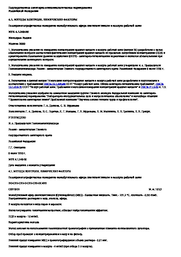 Наша цель состоит в том, чтобы предоставить вам быстрый доступ к содержанию документа Газохроматографическое измерение монобутилового эфира диэтиленгликоля в воздухе рабочей зоны.