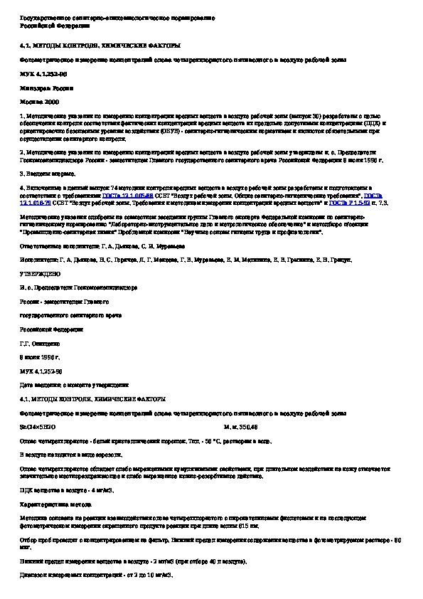 • Просмотр в полноэкранном режиме - легко просмотреть документ Фотометрическое измерение концентрации олова четыреххлористого пятиводного в воздухе рабочей зоны (без загрузки его на свой компьютер).