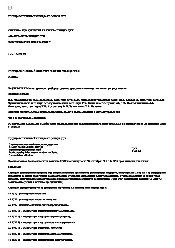 ГОСТ 4.166-85: Система показателей качества продукции. Анализаторы жидкости. Номенклатура показателей