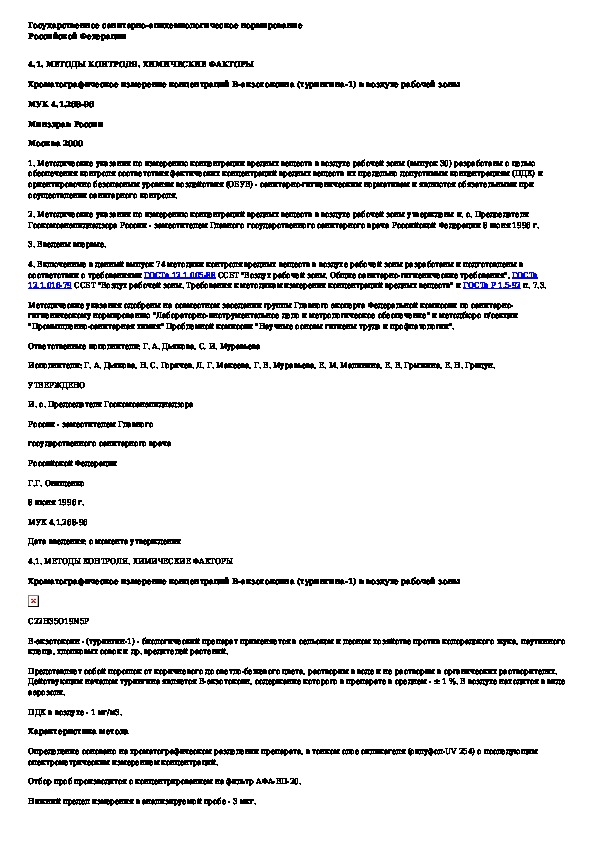 Наша цель состоит в том, чтобы предоставить вам быстрый доступ к содержанию документа Хроматографическое измерение концентраций В-экзотоксина (турингина-1) в воздухе рабочей зоны.