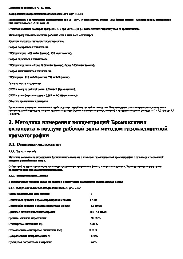Измерение концентрации Бромоксинил октаноата в воздухе рабочей зоны методом газожидкостной хроматографии