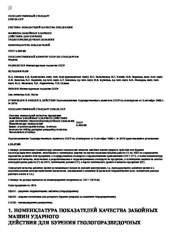 • Просмотр в полноэкранном режиме - легко просмотреть документ Система показателей качества продукции. Машины забойные ударного действия для бурения геологоразведочных скважин. Номенклатура (без загрузки его на свой компьютер).