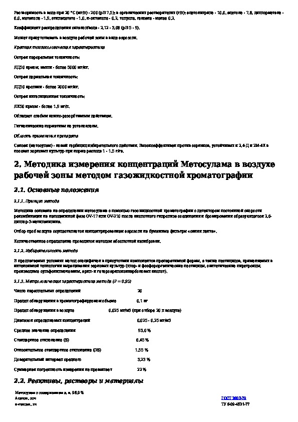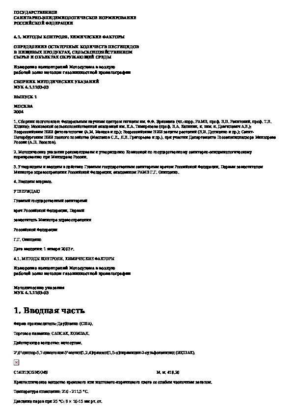 МУК 4.1.1163-03: Измерение концентраций Метосулама в воздухе рабочей зоны методом газожидкостной хроматографии