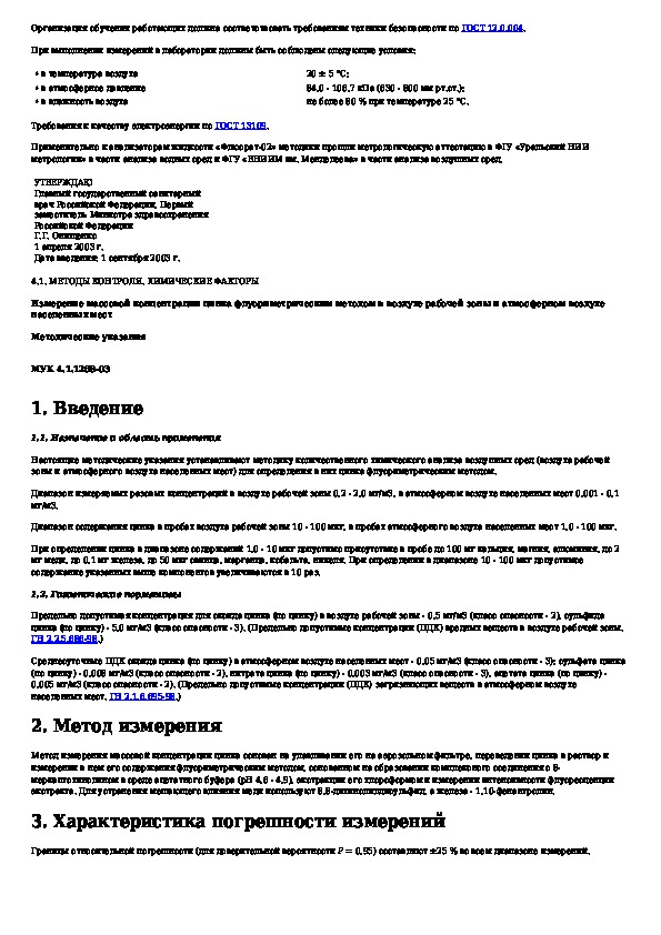 Наша цель состоит в том, чтобы предоставить вам быстрый доступ к содержанию документа Измерение массовой концентрации цинка флуориметрическим методом в воздухе рабочей зоны и атмосферном воздухе населенных мест.