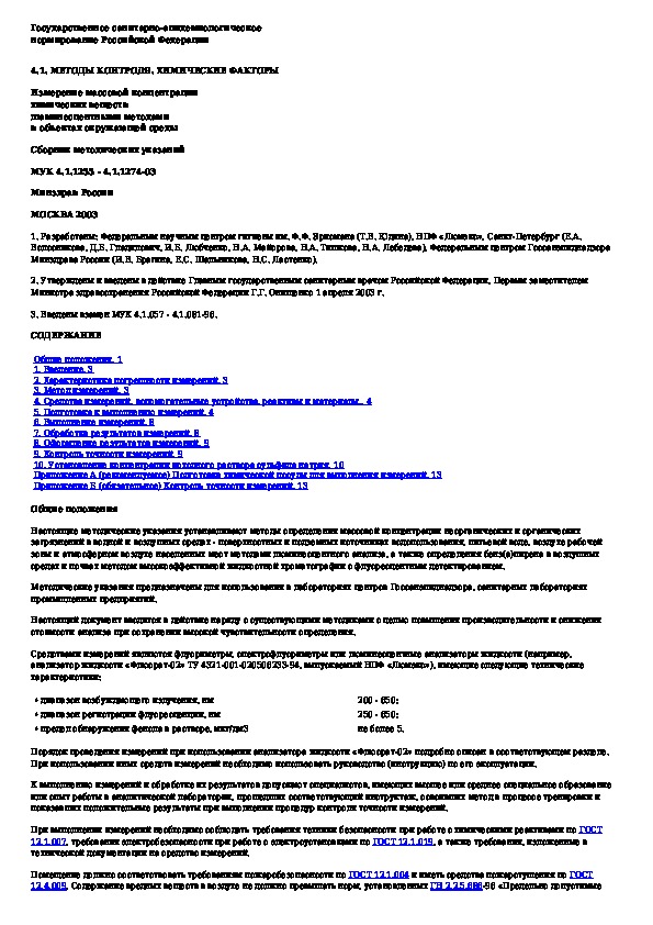 Обозначение: МУК 4.1.1269-03