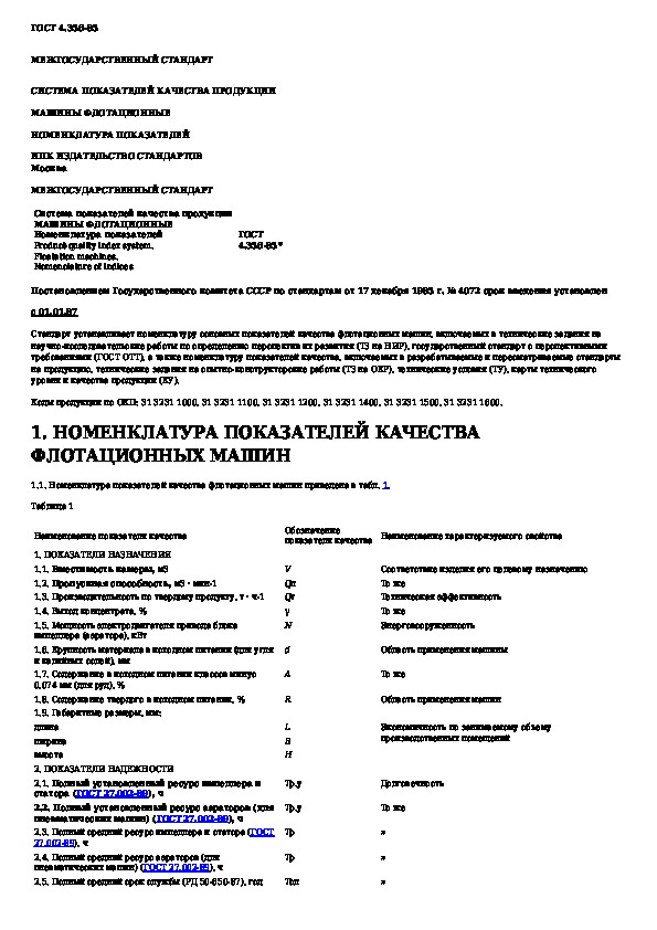 ГОСТ 4.356-85: Система показателей качества продукции. Машины флотационные. Номенклатура показателей