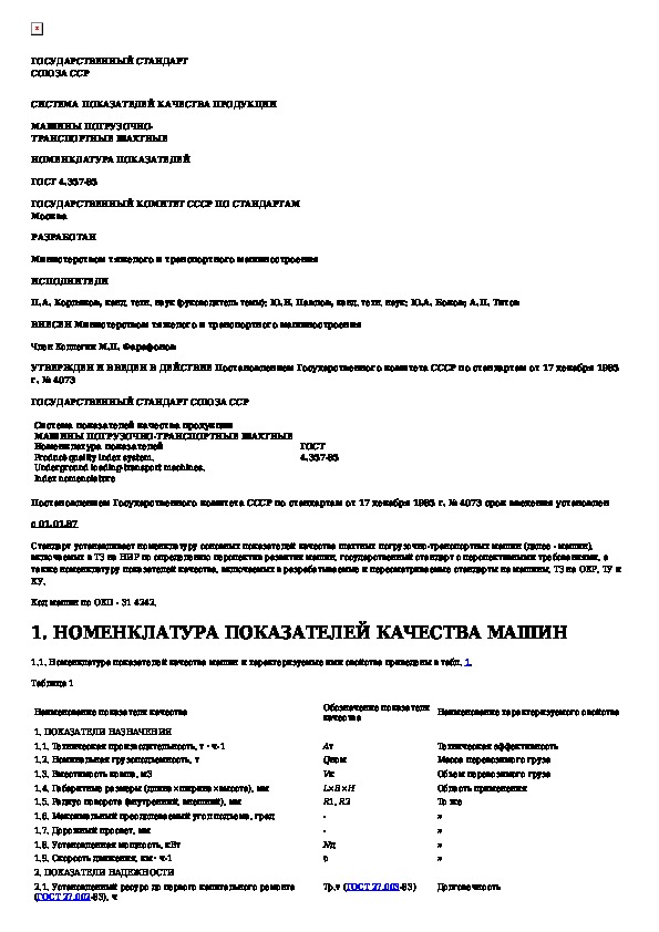 Наша цель состоит в том, чтобы предоставить вам быстрый доступ к содержанию документа Система показателей качества продукции. Машины погрузочно-транспортные шахтные. Номенклатура показателей.