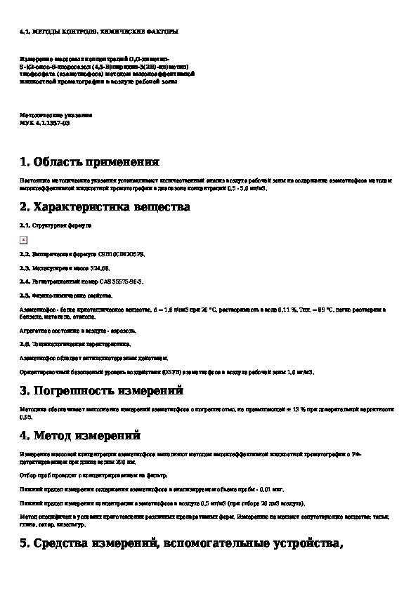 • Просмотр в полноэкранном режиме - легко просмотреть документ Измерение массовых концентраций О,О-диметил-S-[(2-оксо-6-хлоросазол (4,5-В)пиридин-3(2Н)-ил)метил]тиофосфата (азаметиофоса) методом высок (без загрузки его на свой компьютер).