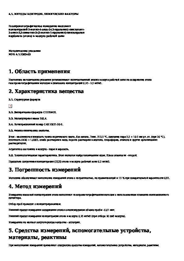 МУК 4.1.1363-03: Газохроматографическое измерение массовых концентраций 2-метил-4-оксо-3-(2-пропенил)-циклопент-2-енил-2,2-диметил-3-(2-метил-1-пропенил)-ц