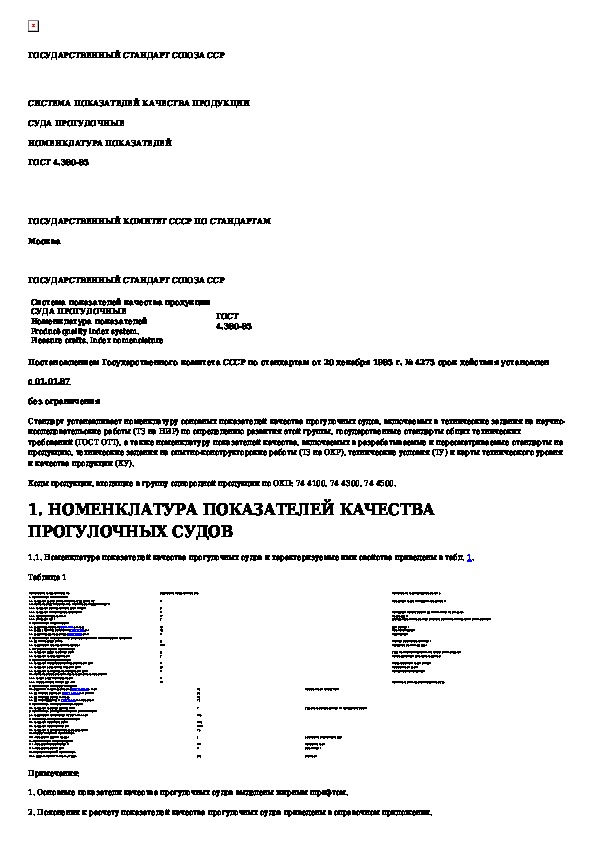 ГОСТ 4.380-85: Система показателей качества продукции. Суда прогулочные. Номенклатура показателей