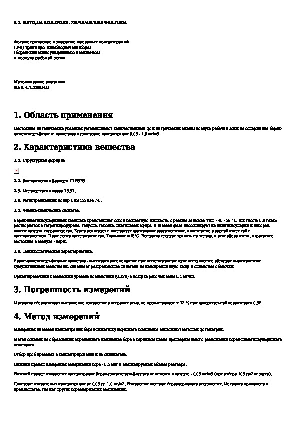 МУК 4.1.1366-03: Фотометрическое измерение массовых концентраций (Т-4) тригидро [тиобис(метан)]бора] (боран-диметилсульфидного комплекса) в воздухе