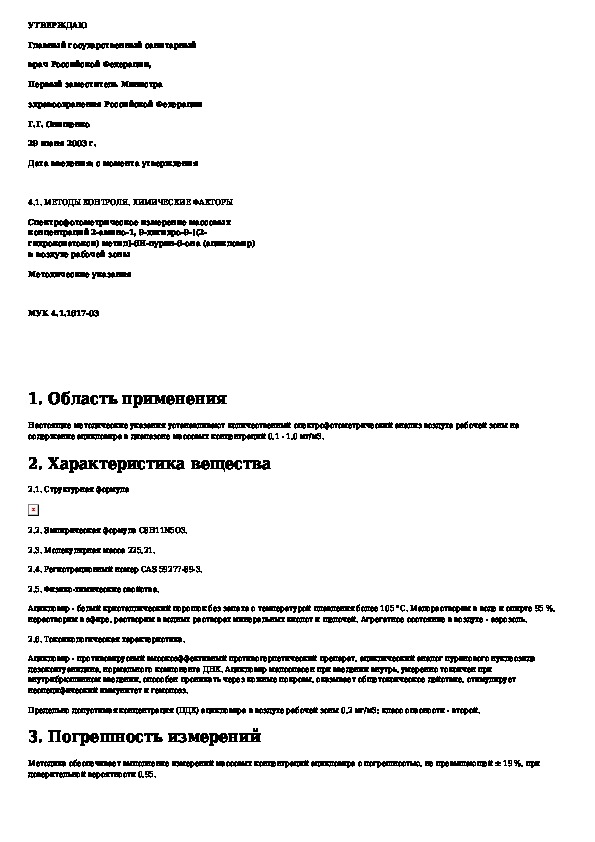 Спектрометрическое измерение массовых концентраций 2-амино-1,9-дигидро-9-[(2-гидроксиэтокси)метил]-6Н-пурин-6-она (ацикловир) в воздухе