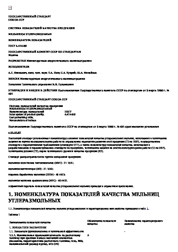 Наша цель состоит в том, чтобы предоставить вам быстрый доступ к содержанию документа Система показателей качества продукции. Мельницы углеразмольные. Номенклатура показателей.
