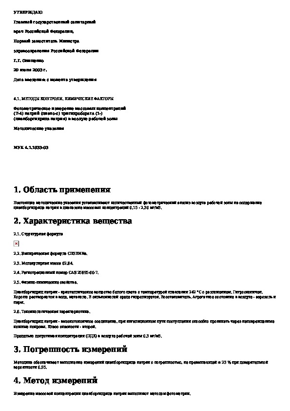 • Просмотр в полноэкранном режиме - легко просмотреть документ Фотометрическое измерение массовых концентраций (Т-4) натрий (циано-с) тригидробората (1-) (цианборгидрида натрия) в воздухе рабочей (без загрузки его на свой компьютер).
