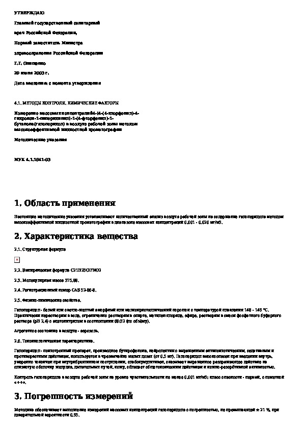 • Просмотр в полноэкранном режиме - легко просмотреть документ Измерение массовых концентраций 4-[4-(4-хлорфенил)-4-гидрокси-1-пиперидинил]-1-(4-фторфенил)-1-бутанона (галоперидол) в воздухе рабочей зо (без загрузки его на свой компьютер).