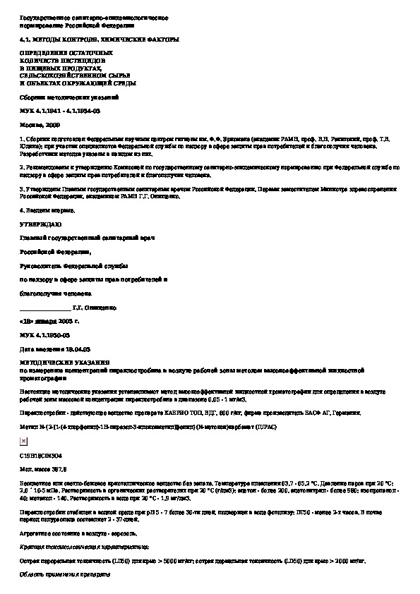 • Просмотр в полноэкранном режиме - легко просмотреть документ Методические указания по измерению концентраций пираклостробина в воздухе рабочей зоны методом высокоэффективной жидкостной хр (без загрузки его на свой компьютер).