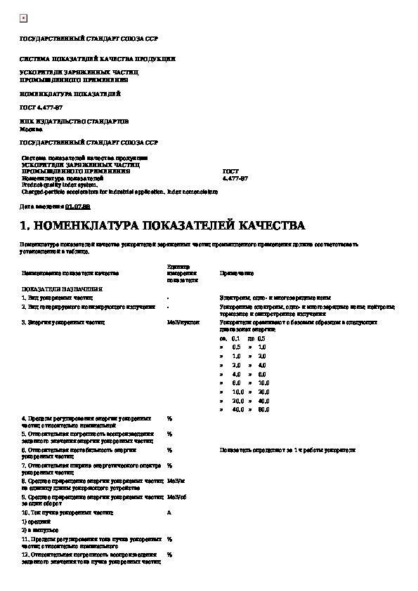Наша цель состоит в том, чтобы предоставить вам быстрый доступ к содержанию документа Система показателей качества продукции. Ускорители заряженных частиц промышленного применения. Номенклатура показателей.