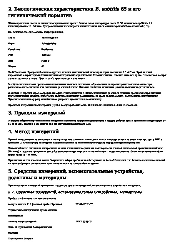 МУК 4.2.1778-03: Метод микробиологического измерения концентрации клеток микроорганизма Bacillus subtilis 65 - продуцента нейтральной протеиназы и амилаз