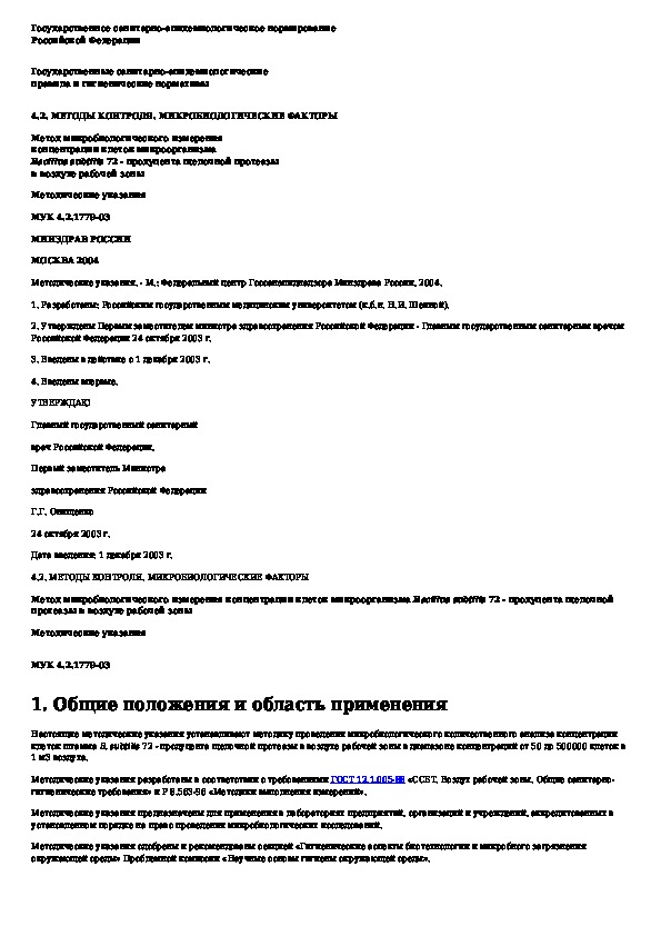 МУК 4.2.1779-03: Метод микробиологического измерения концентрации клеток микроорганизма Bacillus subtilis 72 - продуцента щелочной протеазы в воздухе рабо