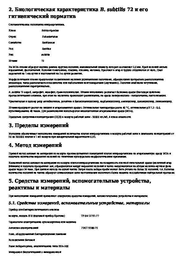 Наша цель состоит в том, чтобы предоставить вам быстрый доступ к содержанию документа Метод микробиологического измерения концентрации клеток микроорганизма Bacillus subtilis 72 - продуцента щелочной протеазы в воздухе рабо.