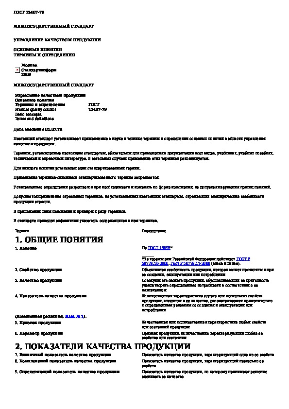 ГОСТ 15467-79: Управление качеством продукции. Основные понятия. Термины и определения