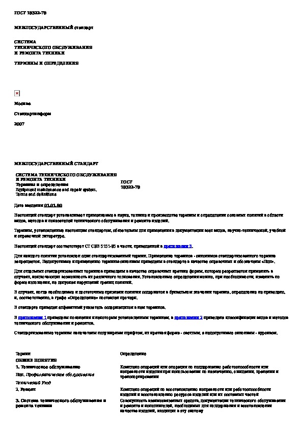 ГОСТ 18322-78: Система технического обслуживания и ремонта техники. Термины и определения