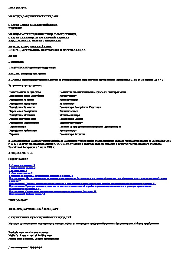 Наша цель состоит в том, чтобы предоставить вам быстрый доступ к содержанию документа Обеспечение износостойкости изделий. Методы установления предельного износа, обеспечивающего требуемый уровень безопасности. Об.