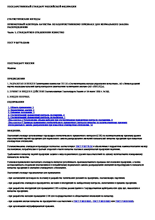 Наша цель состоит в том, чтобы предоставить вам быстрый доступ к содержанию документа Статистические методы. Приемочный контроль качества по количественному признаку для нормального закона распределения. Часть 1. Ст.