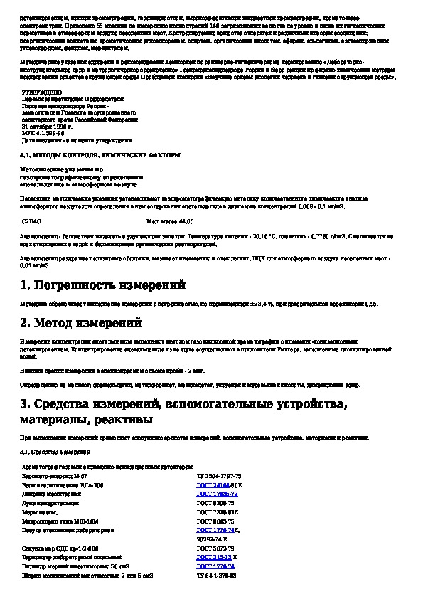 МУК 4.1.599-96: Методические указания по газохроматографическому определению ацетальдегида в атмосферном воздухе
