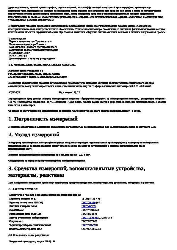 МУК 4.1.601-96: Методические указания по газохроматографическому определению ацетоуксусного эфира в атмосферном воздухе