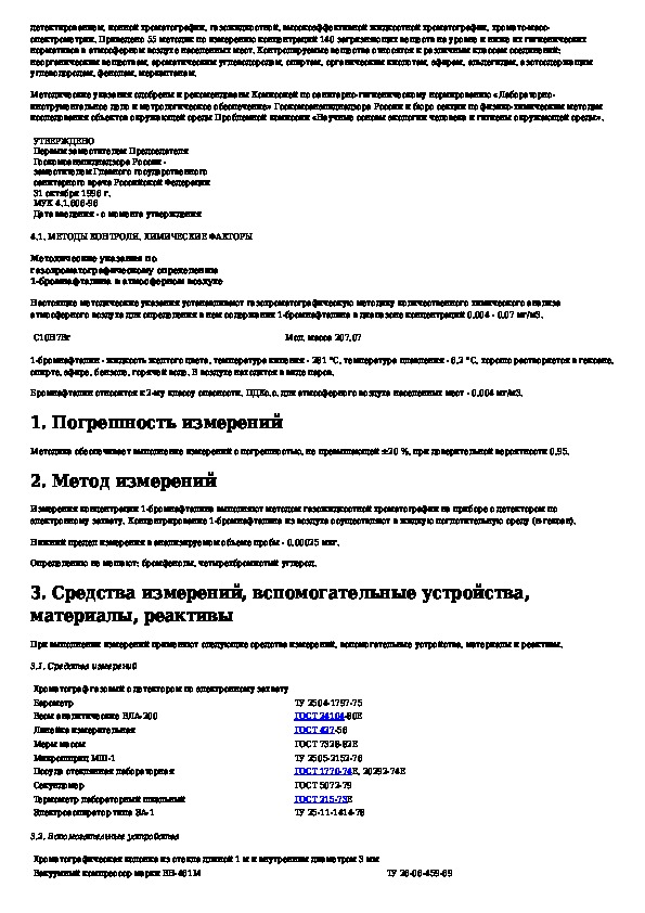 Методические указания по газохроматографическому определению 1-бромнафталина в атмосферном воздухе