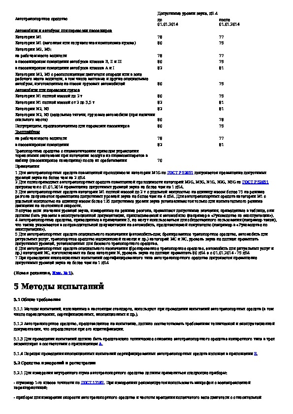 Автомобильные транспортные средства. Шум внутренний. Допустимые уровни и методы испытаний