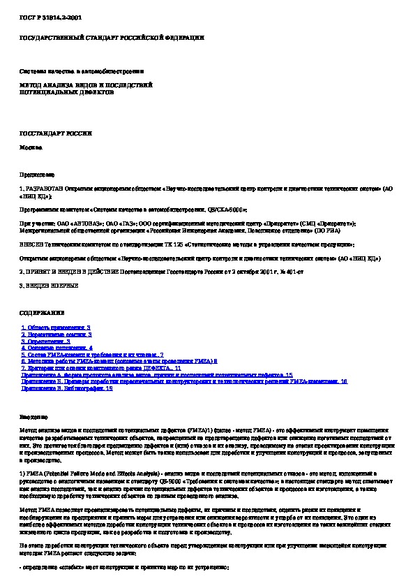 ГОСТ Р 51814.2-2001: Системы качества в автомобилестроении. Метод анализа видов и последствий потенциальных дефектов