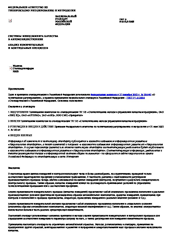 ГОСТ Р 51814.5-2005: Системы менеджмента качества в автомобилестроении. Анализ измерительных и контрольных процессов