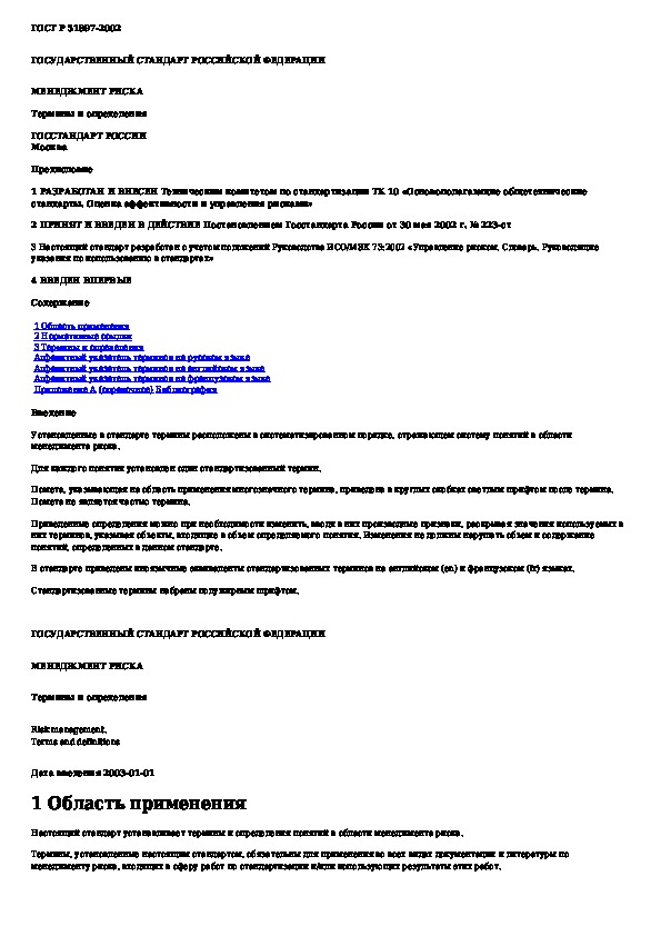 ГОСТ Р 51897-2002: Менеджмент риска. Термины и определения