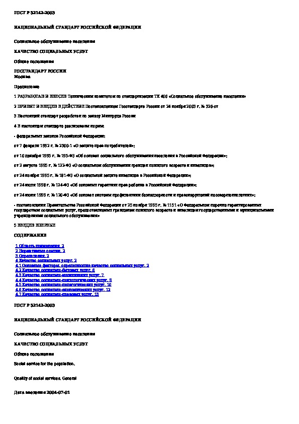 ГОСТ Р 52142-2003: Социальное обслуживание населения. Качество социальных услуг. Общие положения