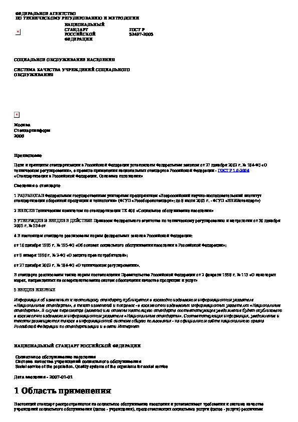 ГОСТ Р 52497-2005: Социальное обслуживание населения. Система качества учреждений социального обслуживания