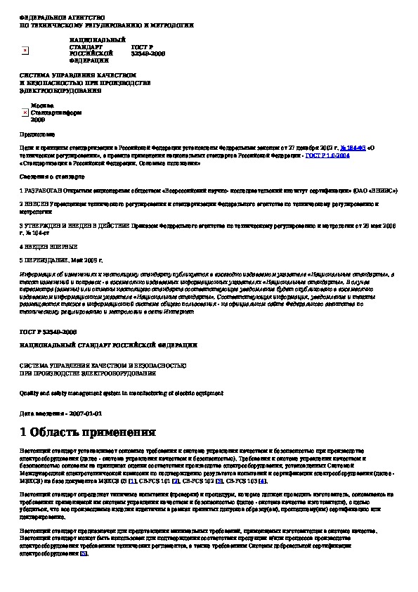 ГОСТ Р 52549-2006: Система управления качеством и безопасностью при производстве электрооборудования