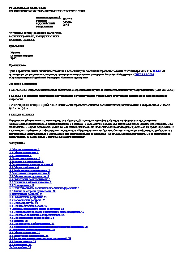 Наша цель состоит в том, чтобы предоставить вам быстрый доступ к содержанию документа Системы менеджмента качества в организациях, выпускающих нанопродукцию. Требования.