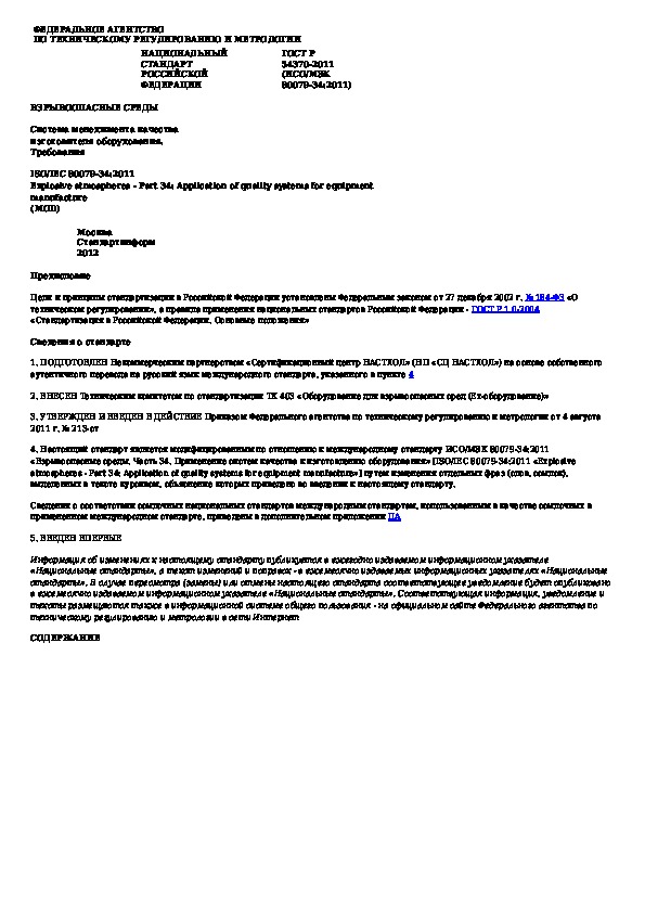 Наша цель состоит в том, чтобы предоставить вам быстрый доступ к содержанию документа Взрывоопасные среды. Система менеджмента качества изготовителя оборудования. Требования.
