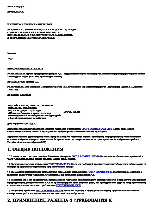Наша цель состоит в том, чтобы предоставить вам быстрый доступ к содержанию документа Российская система калибровки. Указания по применению ГОСТ Р ИСО/МЭК 17025-2000 "Общие требования к компетентности испытательных и кал.