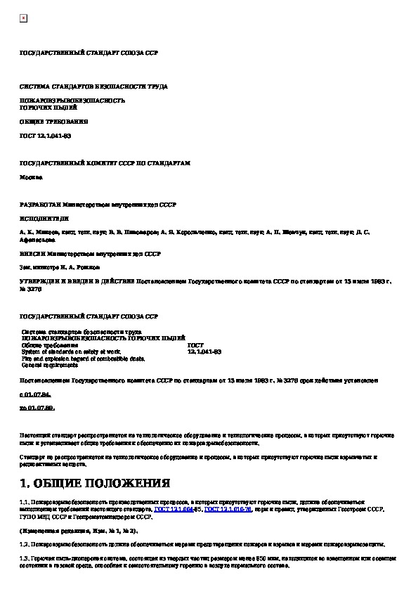 Наша цель состоит в том, чтобы предоставить вам быстрый доступ к содержанию документа Система стандартов безопасности труда. Пожаровзрывобезопасность горючих пылей. Общие требования.
