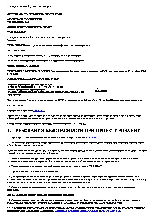 ГОСТ 12.2.063-81: Система стандартов безопасности труда. Арматура промышленная трубопроводная. Общие требования безопасности