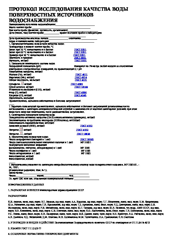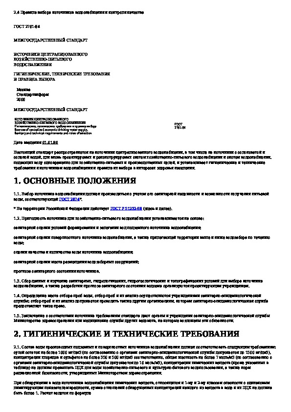 ГОСТ 2761-84: Источники централизованного хозяйственно-питьевого водоснабжения. Гигиенические, технические требования и правила выбора