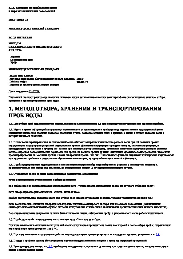 ГОСТ 18963-73: Вода питьевая. Методы санитарно-бактериологического анализа